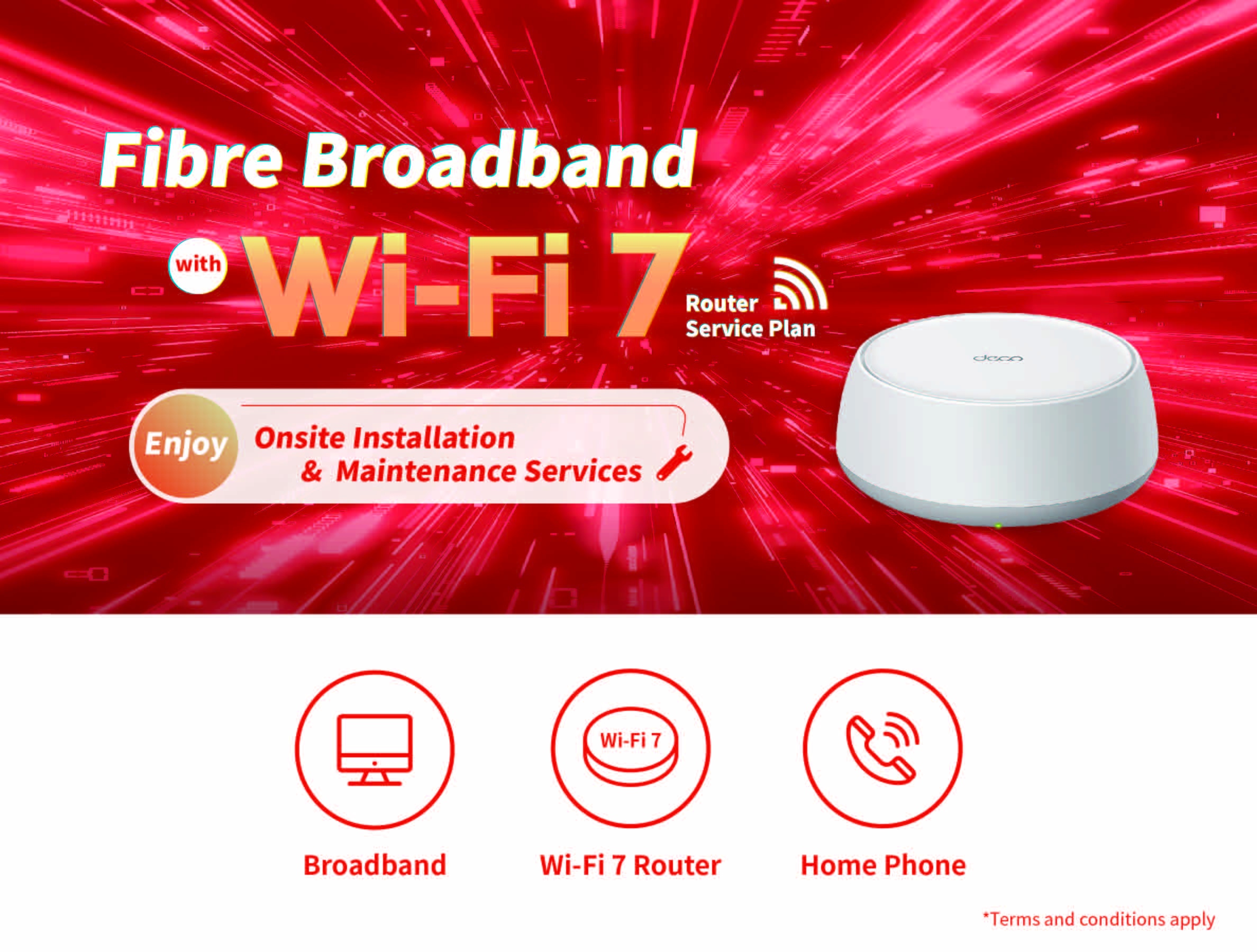 HGC Broadband offers different monthly subscription plans for its Wi-Fi services, letting customers freely choose either a 1-set Wi-Fi 6 / 7 Router Plan or Wi-Fi 360 for those choosing the 2- or 3-sets of Wi-Fi Router. All Wi-Fi plans supported by Wi-Fi 6 / 7 Router cover on-site installation by professional technicians, along with maintenance service during the contract period, as part of its thorough customer services.