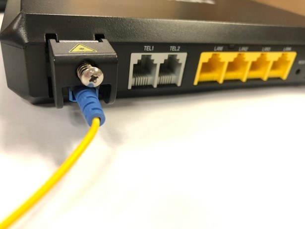 Loosen the screw on the back of the modem and unplug the optical fiber cable.
