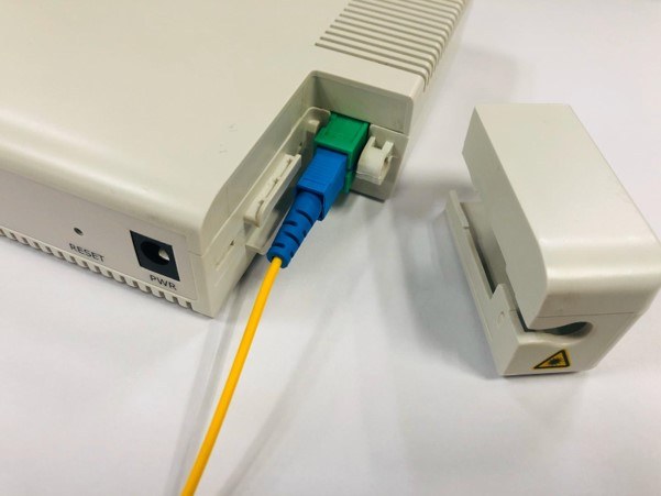 Reverse the modem, open the bottom cover, and unplug the optical fiber cable.