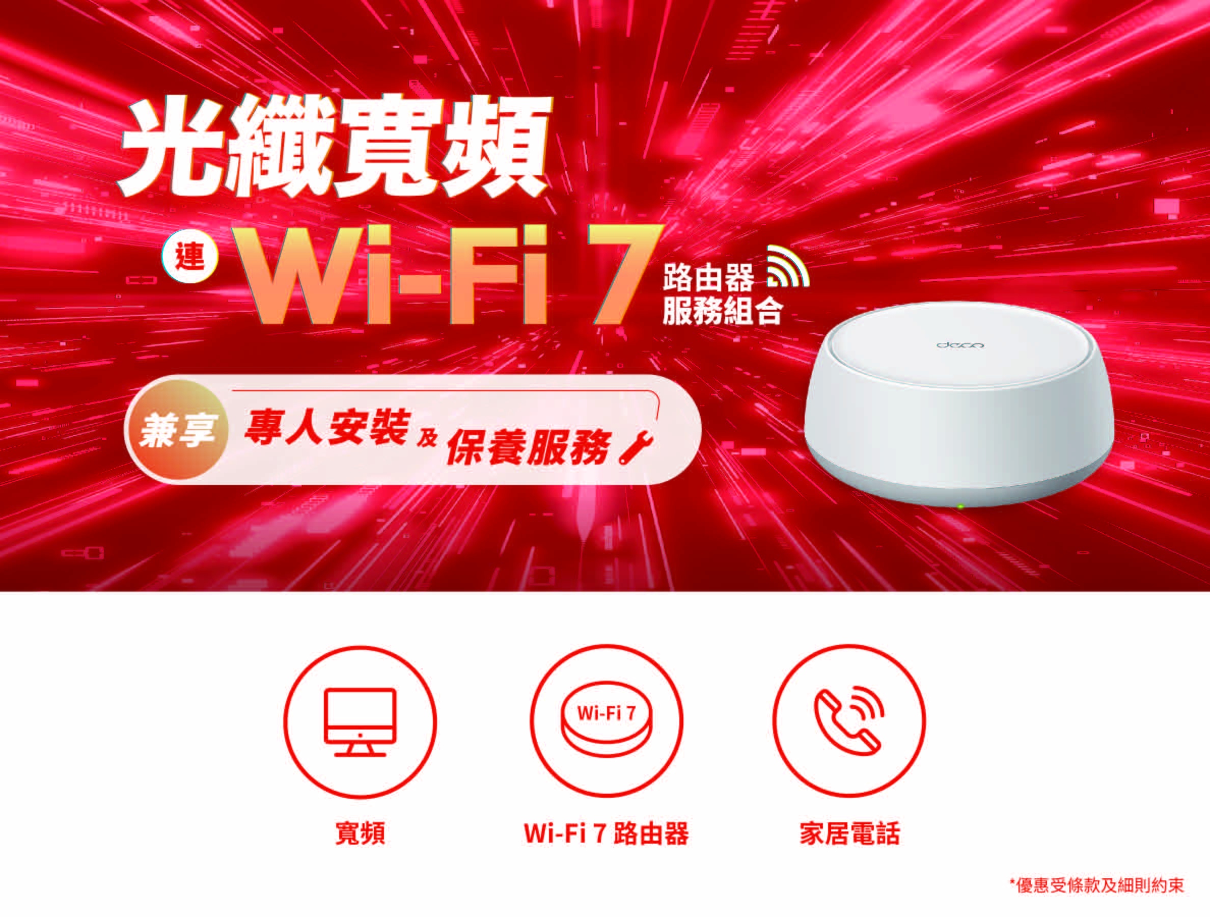 現時,在家工作、網上學習及娛樂均需要可靠的 Wi-Fi 無線網絡。作為目前主要技術,Wi-Fi 6 / 7 有效同時支援多個設備連接,提供更快的連接速度,讓用戶可同時利用支援 Wi-Fi 6 / 7 的智能裝置流暢地觀看 4K 及 8K 高清影片、玩線上遊戲、進行在家工作或網上課堂等,進一步提升上網體驗。HGC環電寬頻亦會提供一站式服務包括 Wi-Fi 6 / 7 路由器安裝及售後支援,免卻客戶因繁複程序所帶來的煩惱。