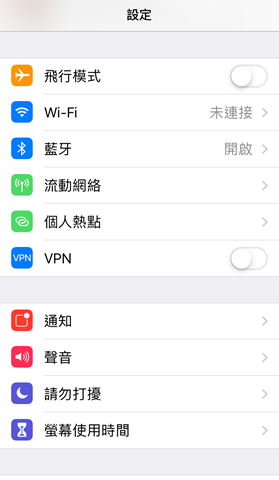 1. 於「設定」中,開啟「 Wi-Fi 」。